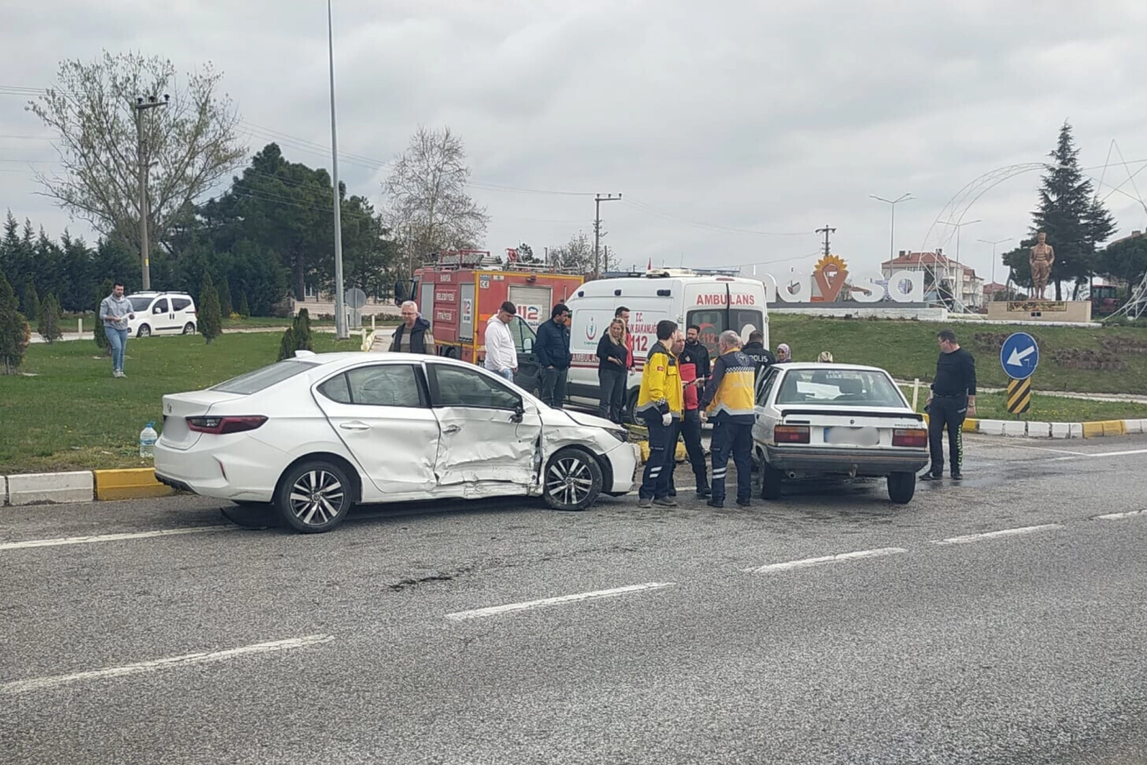 Edirne'nin Havsa ilçesi girişinde bulunan kavşakta sürücülüğünü H. Ü.'nün yaptığı 22 PF 16* plakalı otomobil ile E. K. yönetimindeki 22 EK 93* plakalı otomobil çarpıştı.