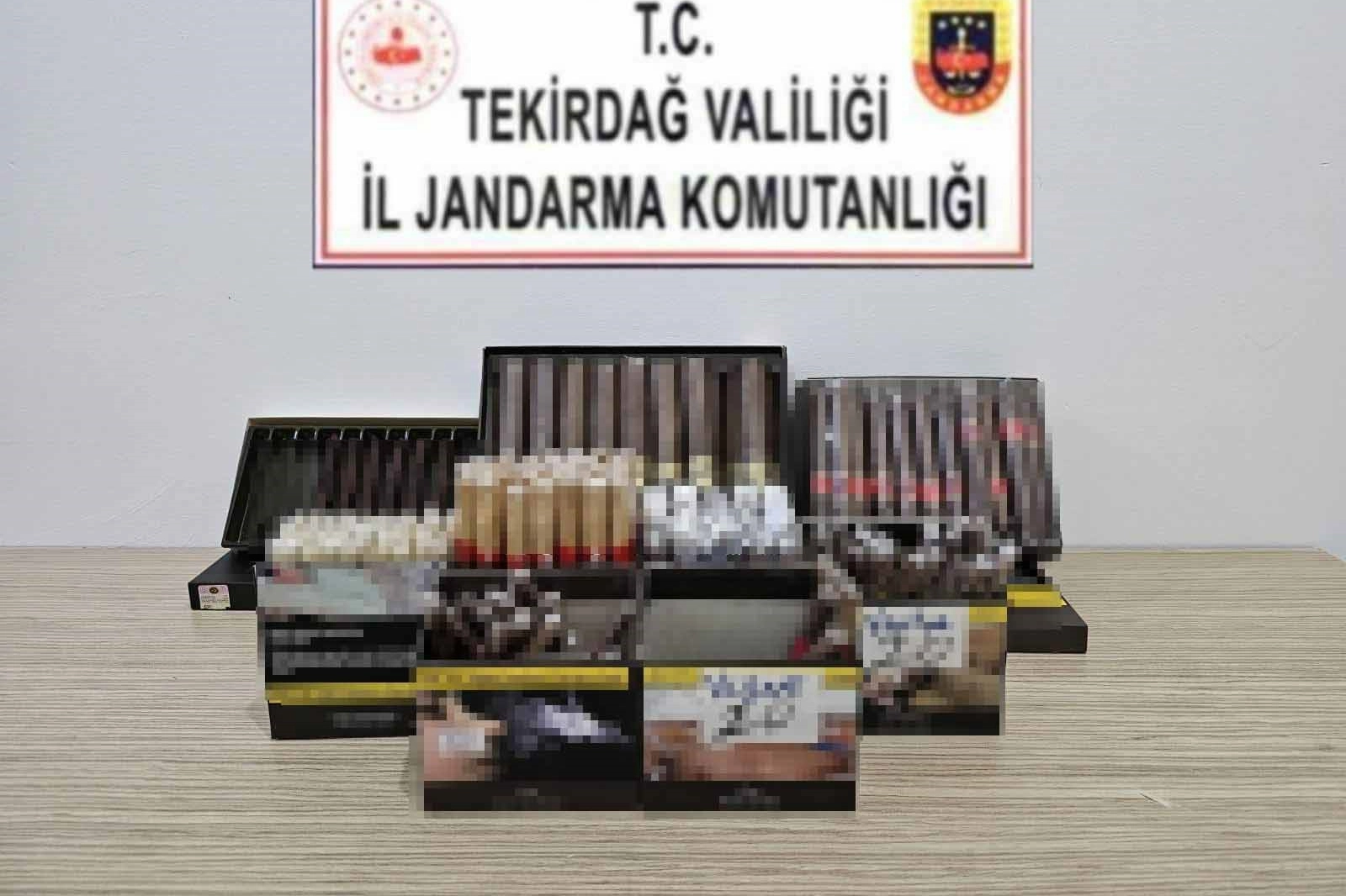 Tekirdağ İl Jandarma Komutanlığınca, Saray Bozoba Mahallesi'nde F.S. isimli şahsın iş yerinde yapılan aramalarda; 2 kilo 350 gram kıyılmış tütün, 185 adet satışa hazır puro, 300 adet içime hazır dolu makaron ele geçirildi. Şahsa 16 bin 687 TL idari para cezası uygulandı.