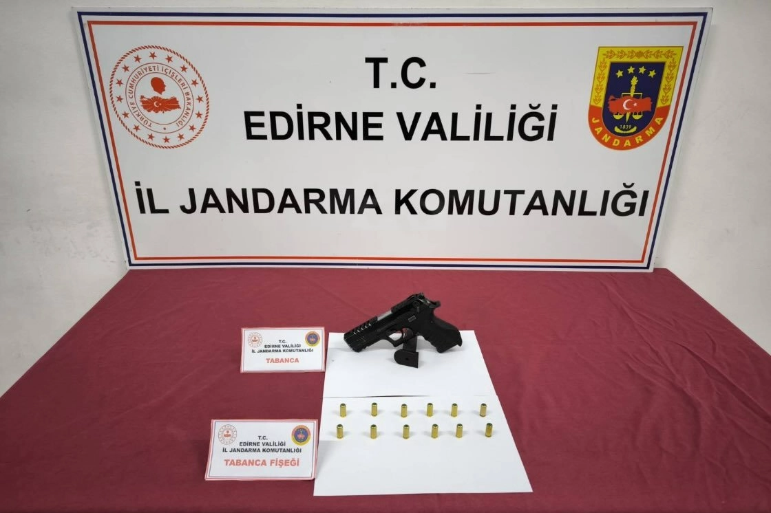 İpsala ilçesine bağlı Esetçe Beldesi'nde genel güvenliği tehlikeye sokma ihbarı üzerine harekete geçen jandarma ekipleri, şüpheli iki kişinin bulunduğu aracı kontrol etti. Yapılan aramada, araçta bulunan bir adet kuru sıkı tabancaya el konuldu. Olayla ilgili olarak adli işlem başlatıldı.