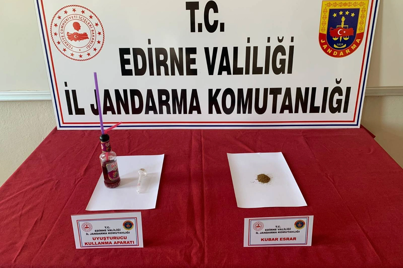 Edirne İl Jandarma Komutanlığına bağlı ekipler tarafından gerçekleştirilen faaliyetler sonucunda, 0,5 gram eroin, 5 gram metamfetamin, 2 gram kubar esrar ve 2 adet uyuşturucu kullanma aparatı ele geçirildi.