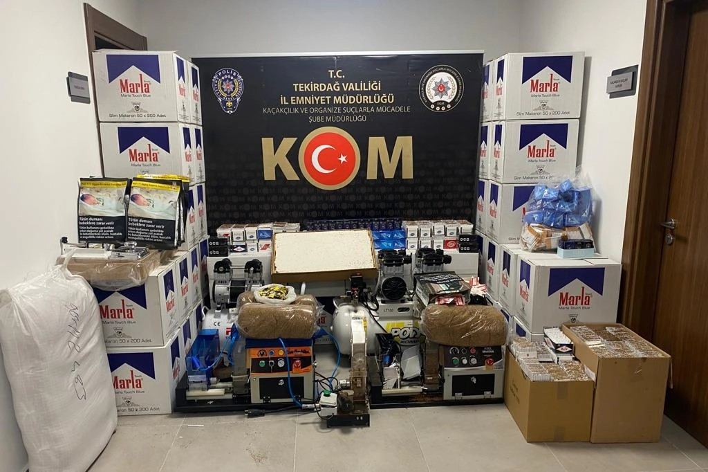İl Emniyet Müdürlüğü Kaçakçılık ve Organize Suçlarla Mücadele Şubesi ekipleri, Süleymanpaşa ve Muratlı ilçelerinde 15 ev, 4 iş yeri ve depoda arama yaptı.