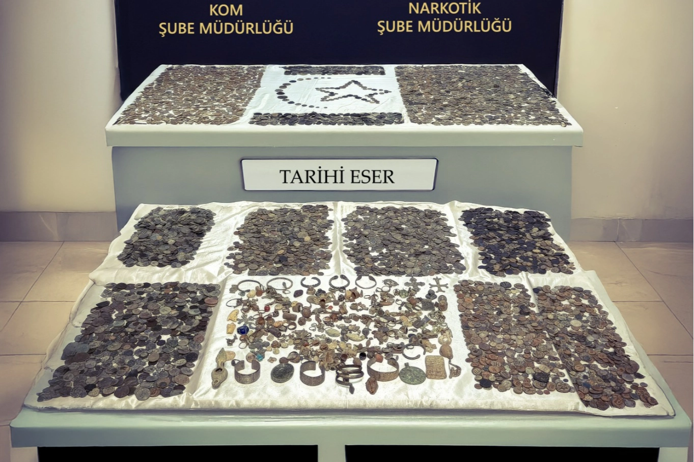 Tırın kupasında yapılan aramada, tarihi eser niteliğinde olduğu değerlendirilen 12 bin 370 sikke ile 400 takı ve obje ele geçirildi.