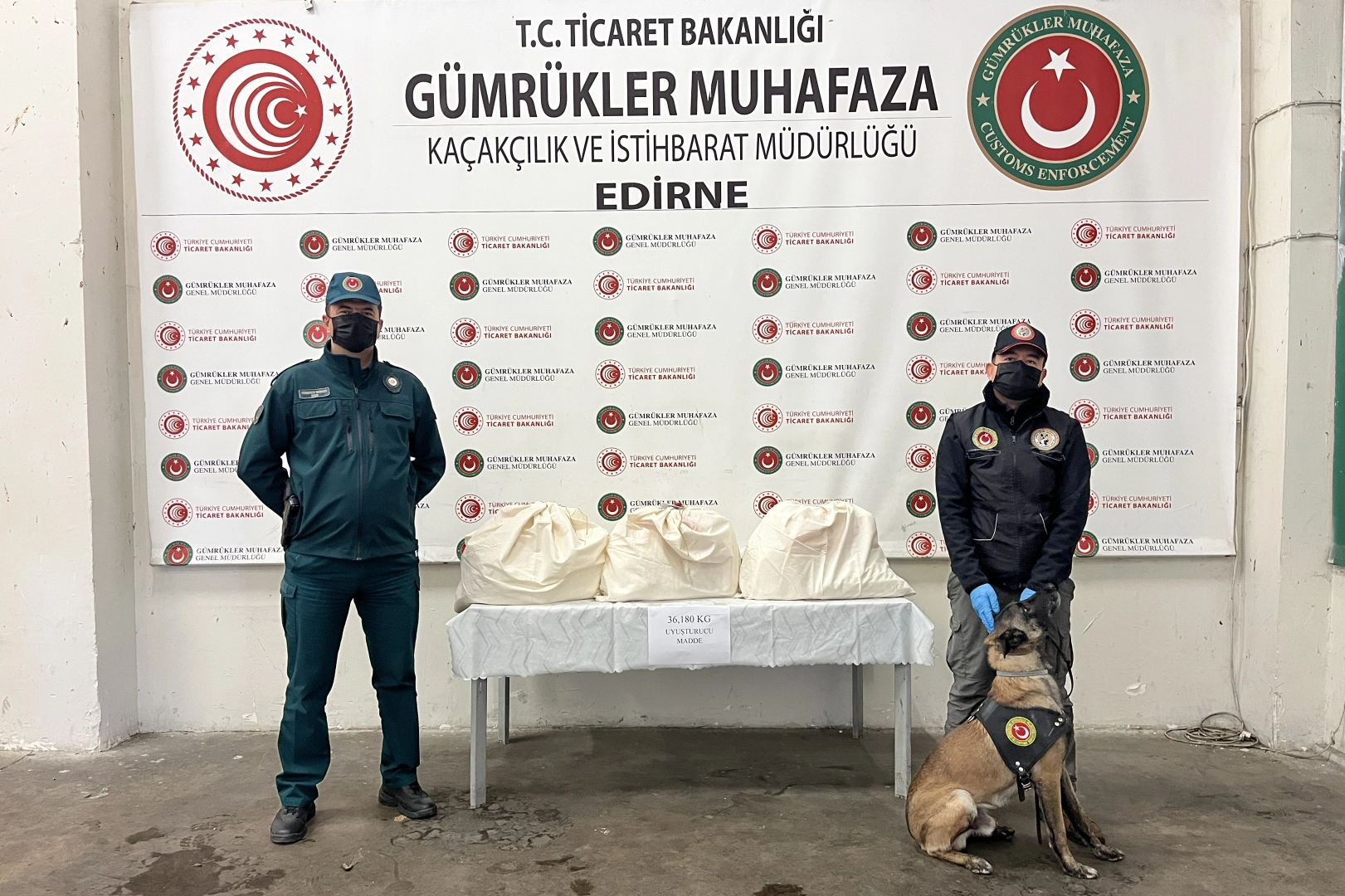 Yoğunluk tespit edilmesi üzerine Edirne Gümrük Muhafaza ekipleri, narkotik dedektör köpeği "Alfa"nın katılımıyla arama yaptı.