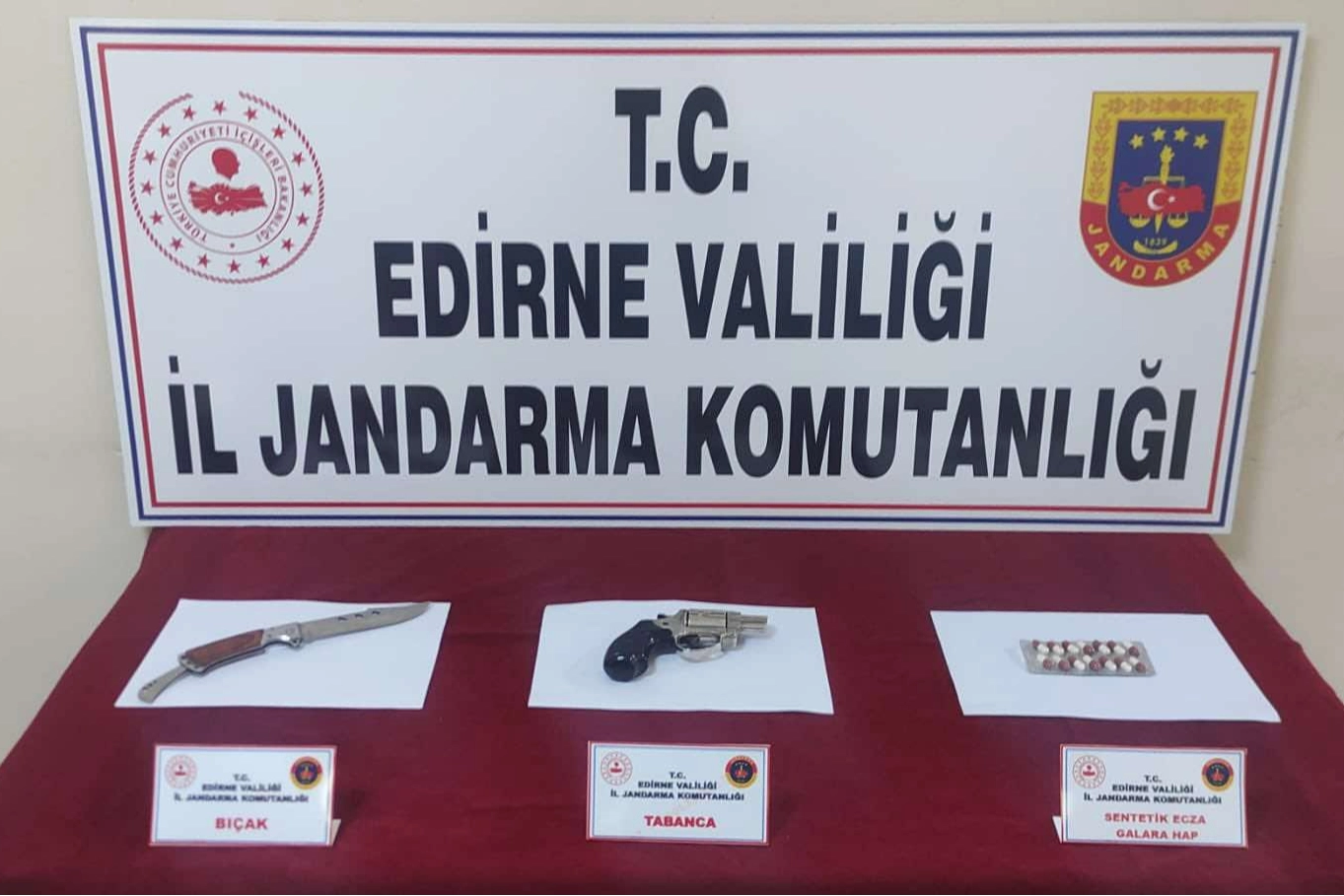 Bu kapsamda Edirne’nin Keşan ilçesinde gerçekleştirilen operasyonda, ekipler tarafından yapılan ev ve ek aramalarında bir adet 9 mm tabanca, bir adet bıçak ve 14 kapsül sentetik hap ele geçirildi.