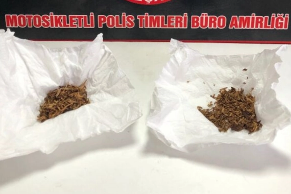 Aramalarda 0,14 gram metanfetamin, 0,37 gram eroin ve peçeteye sarılı 5,39 gram kimyasala bulanmış tütün ele geçirildi.