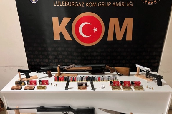 Şüphelilerin ev ve iş yerlerinde yapılan aramalarda, 4 tabanca, 399 fişek, av tüfeği, 74 tüfek fişeği, 5 sustalı, kılıç ve şiş, 62 gram uyuşturucu madde ele geçirildi.