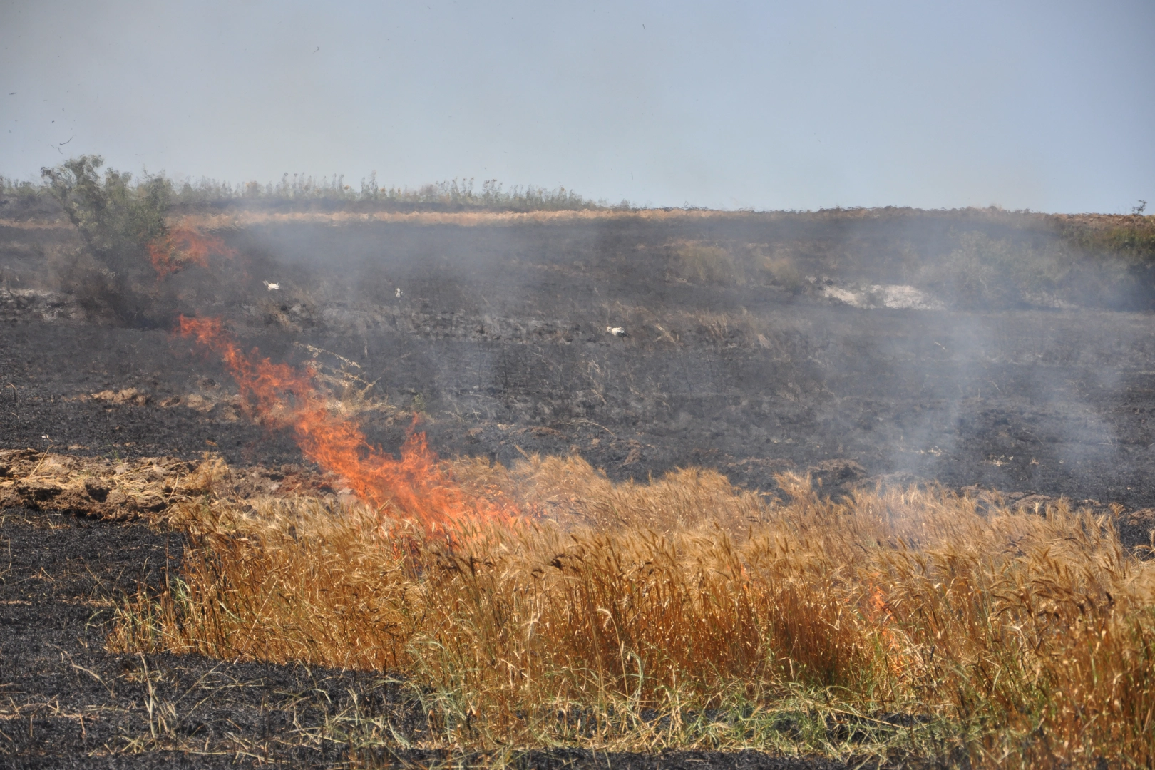 İtfaiyenin müdahalesiyle söndürülen yangın sonucu 100 dekar buğday ekili alan zarar gördü.
