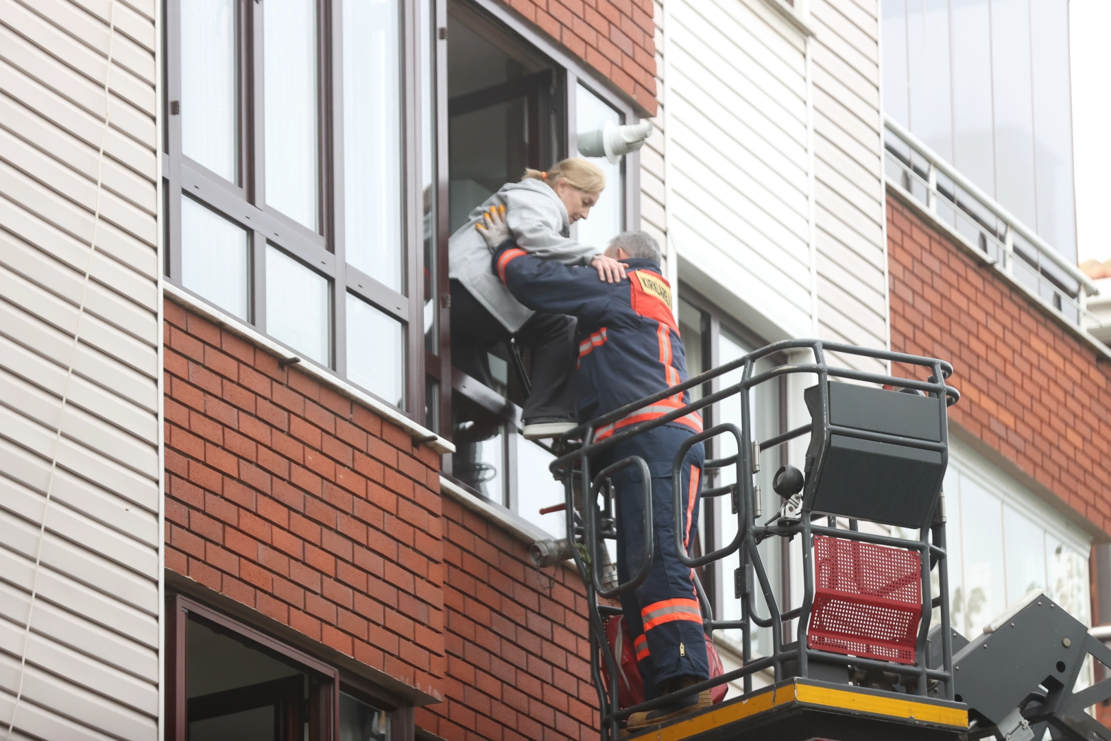 İtfaiye ekipleri binanın üst katında mahsur kalan vatandaşları merdivenli araçlarla tahliye etti.