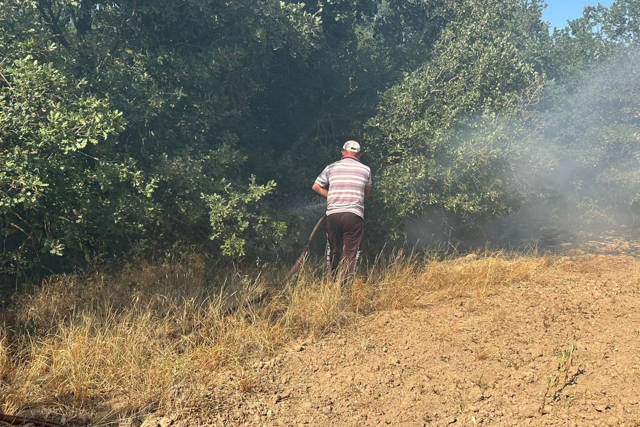 Kırıkköy köyü yakınlarında henüz bilinmeyen nedenle hasat edilmiş buğday tarlasında yangın çıktı. Alevler kısa sürede bölgedeki ağaçlık alana sıçradı.