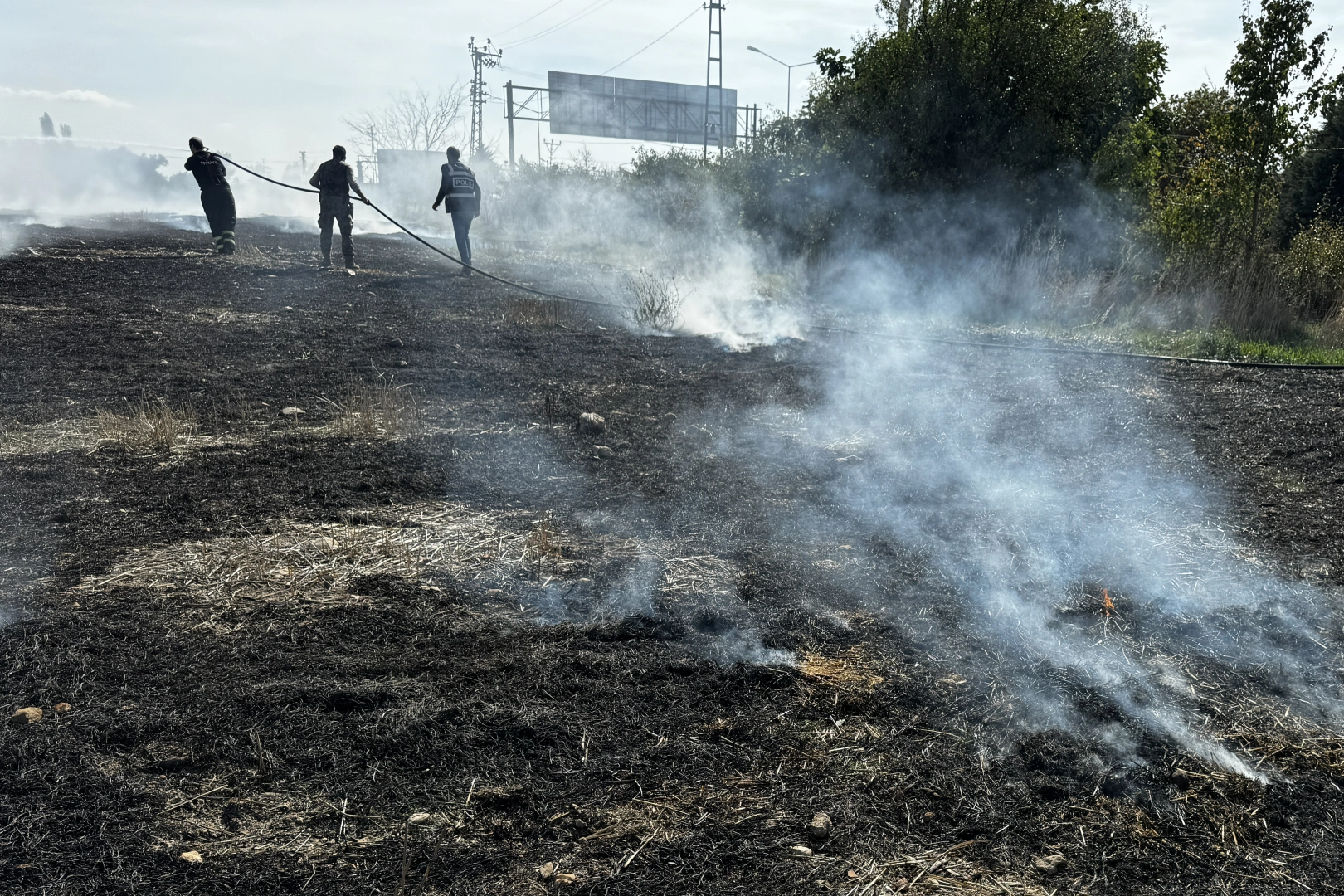 Pınarhisar yolu Rauf Denktaş bulvarında hasat edilen buğday tarlasındaki anız alanda henüz bilinmeyen nedenle yangın çıktı.