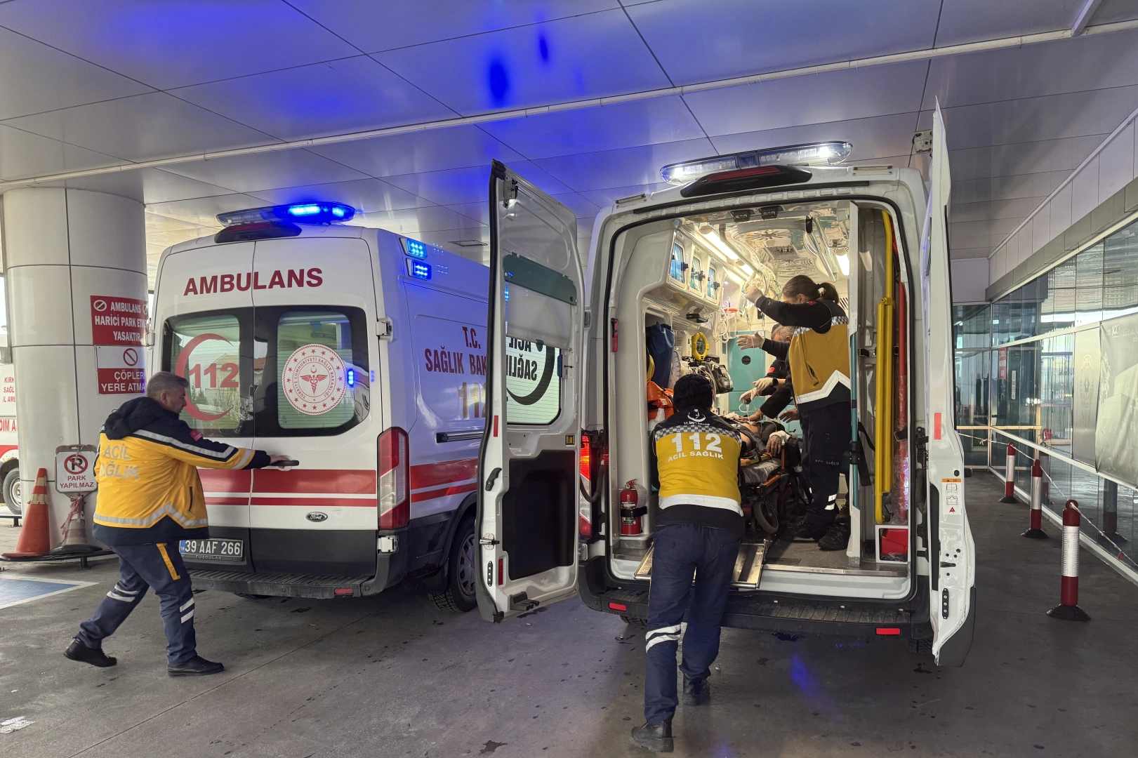 Sağlık ekipleri, yaralı 2 kişiyi ambulanslarla hastaneye kaldırdı.