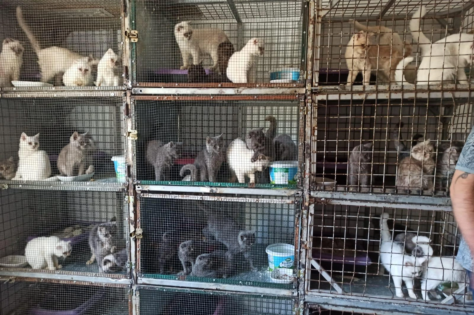 Ekiplerce F.E'ye ait hijyen koşullarının yetersiz olduğu tespit edilen depoda kafeslere konulmuş 243 kedi bulundu.