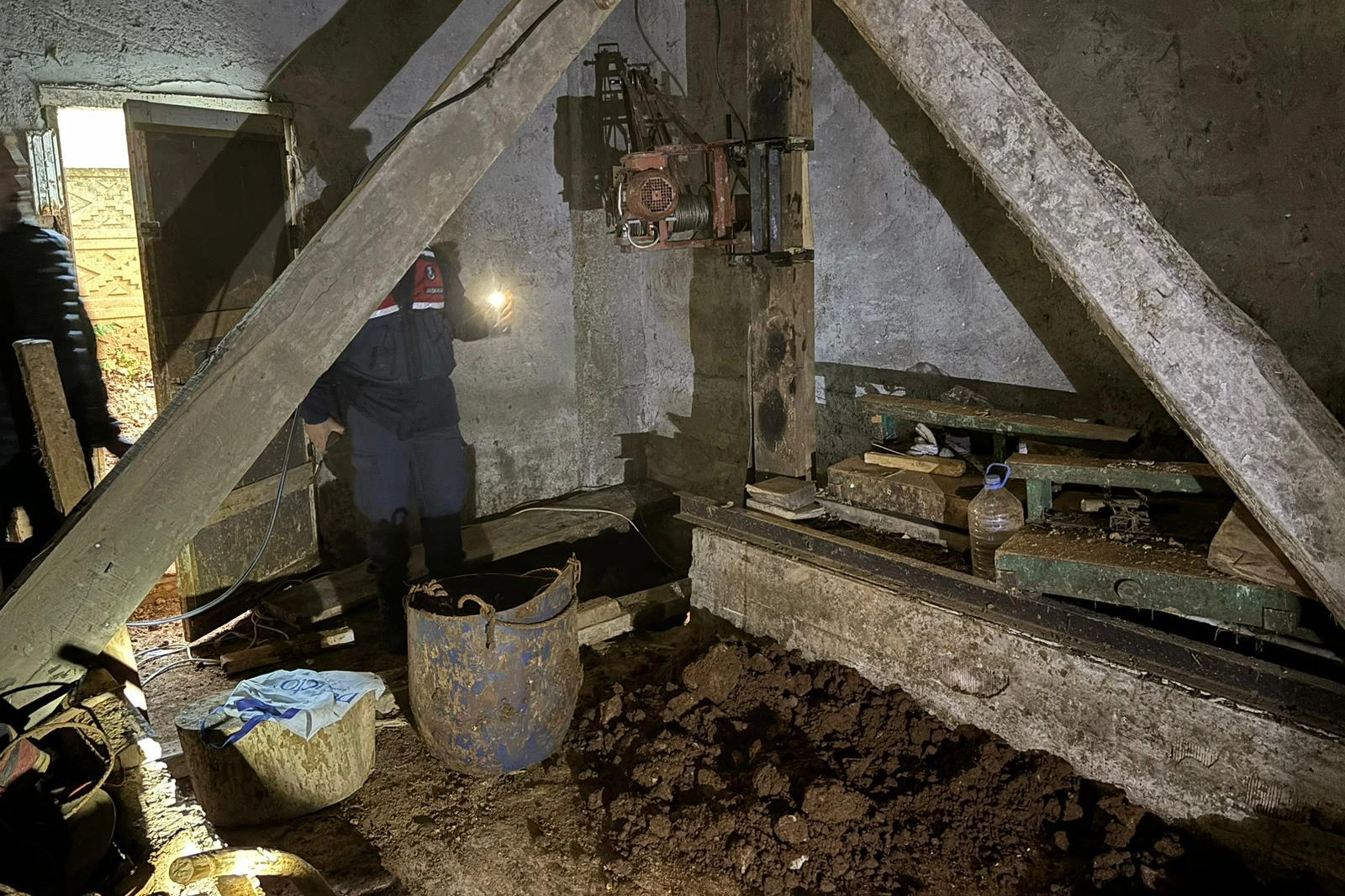 Eve giden ekipler, yaptıkları incelemede şüphelilerin evin zemininde 20 metre derinliğinde çukur açtığını tespit etti.
