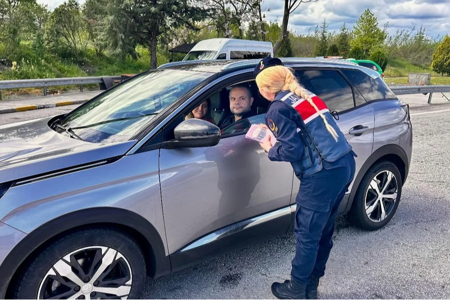 İl Jandarma Komutanlığı ekipleri Babaeski otoban gişelerinde oluşturulan trafik ve asayiş uygulama noktasında araçları durdurup sürücülerin evraklarını kontrol etti.