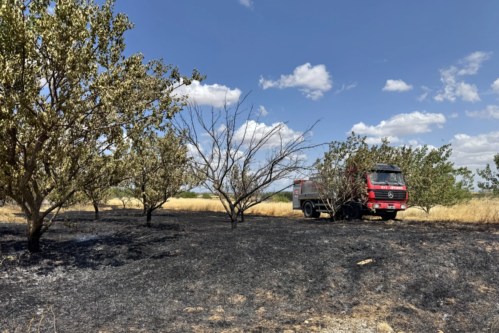 İnece beldesi yakınlarındaki meyve bahçesinde henüz bilinmeyen nedenle çıkan yangın, rüzgarın da etkisiyle kısa sürede büyüdü.