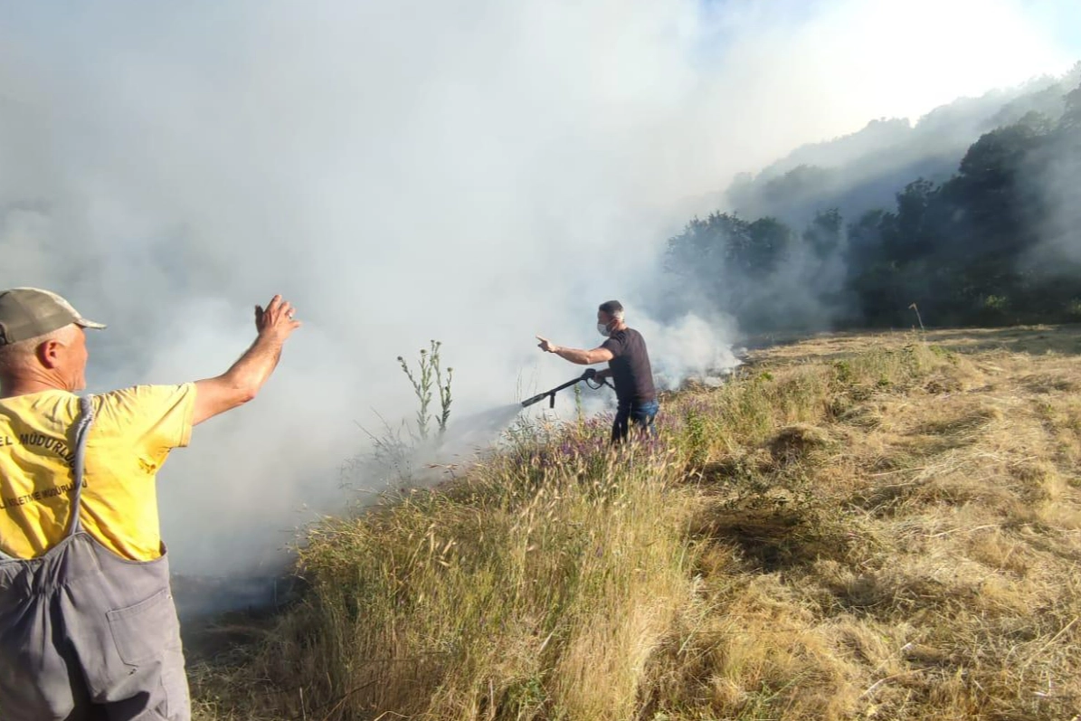 Düzorman köyünde henüz belirlenemeyen nedenle otluk alanda yangın çıktı.