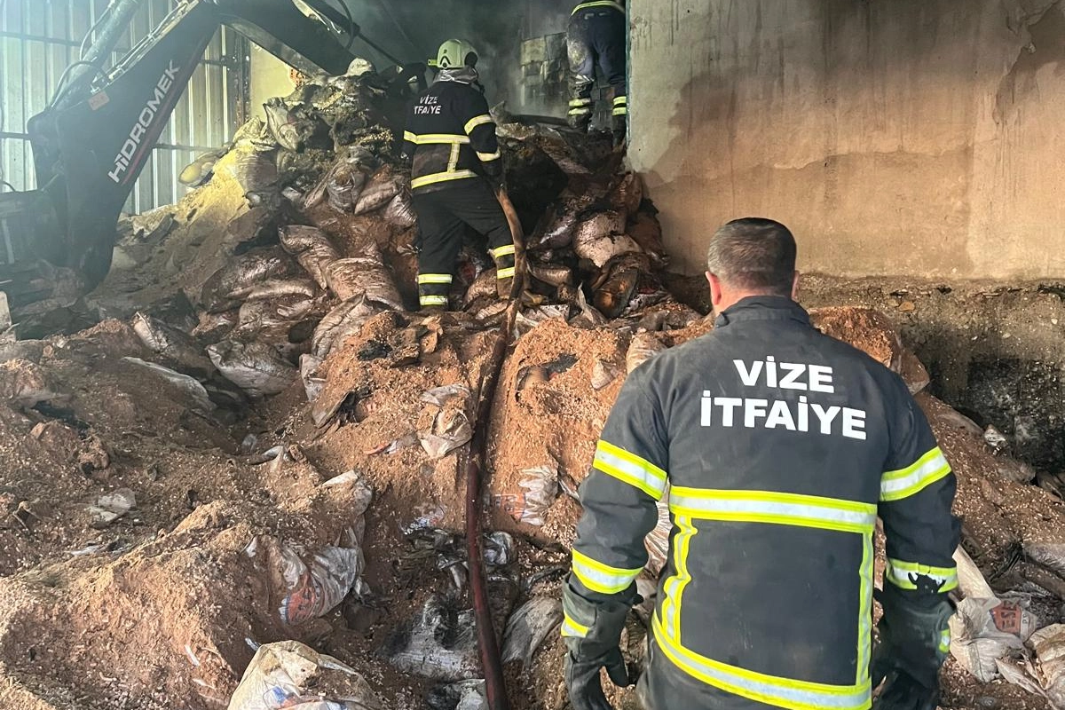 Kışlacık köyünde, pelet deposunun bir bölümünde henüz belirlenemeyen nedenle yangın çıktı.