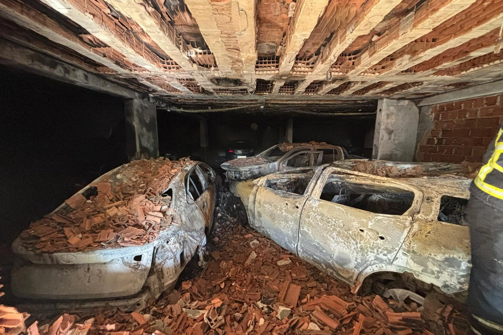 Otoparkta bulunan 5 otomobil kullanılmaz hale gelirken, bazı araçlarda maddi hasar oluştu.