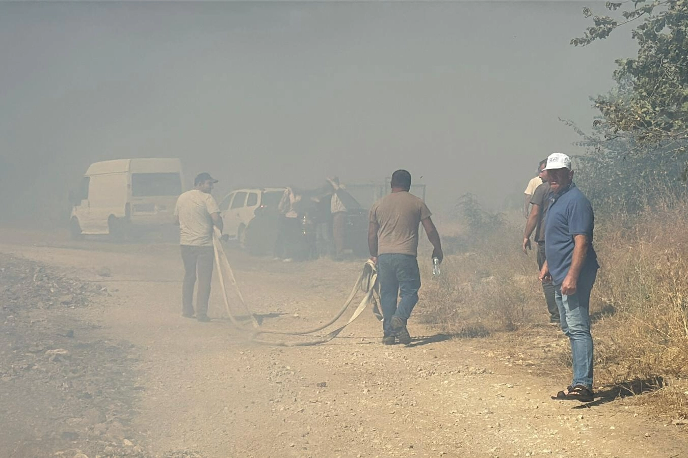 Köye yakın yeni hasat edilmiş buğday tarlası anızında henüz belirlenemeyen nedenle yangın çıktı.