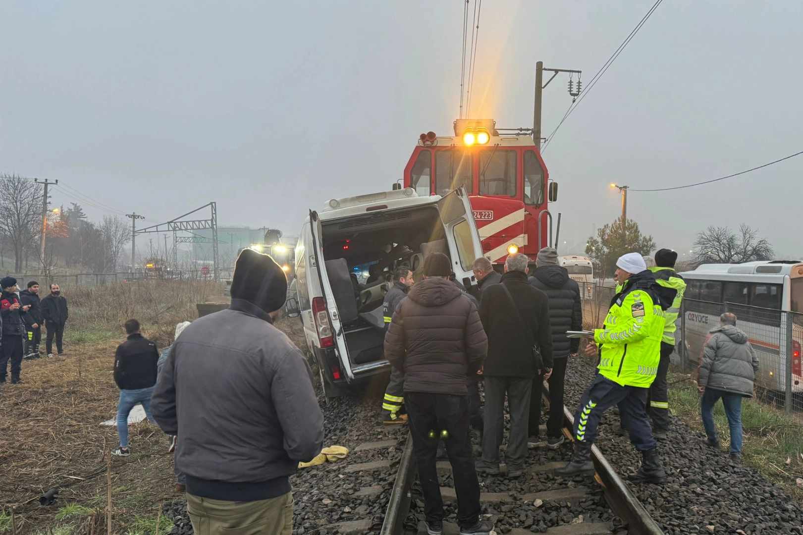 Raydan minibüsün kaldırılması çalışmaları devam ediyor.