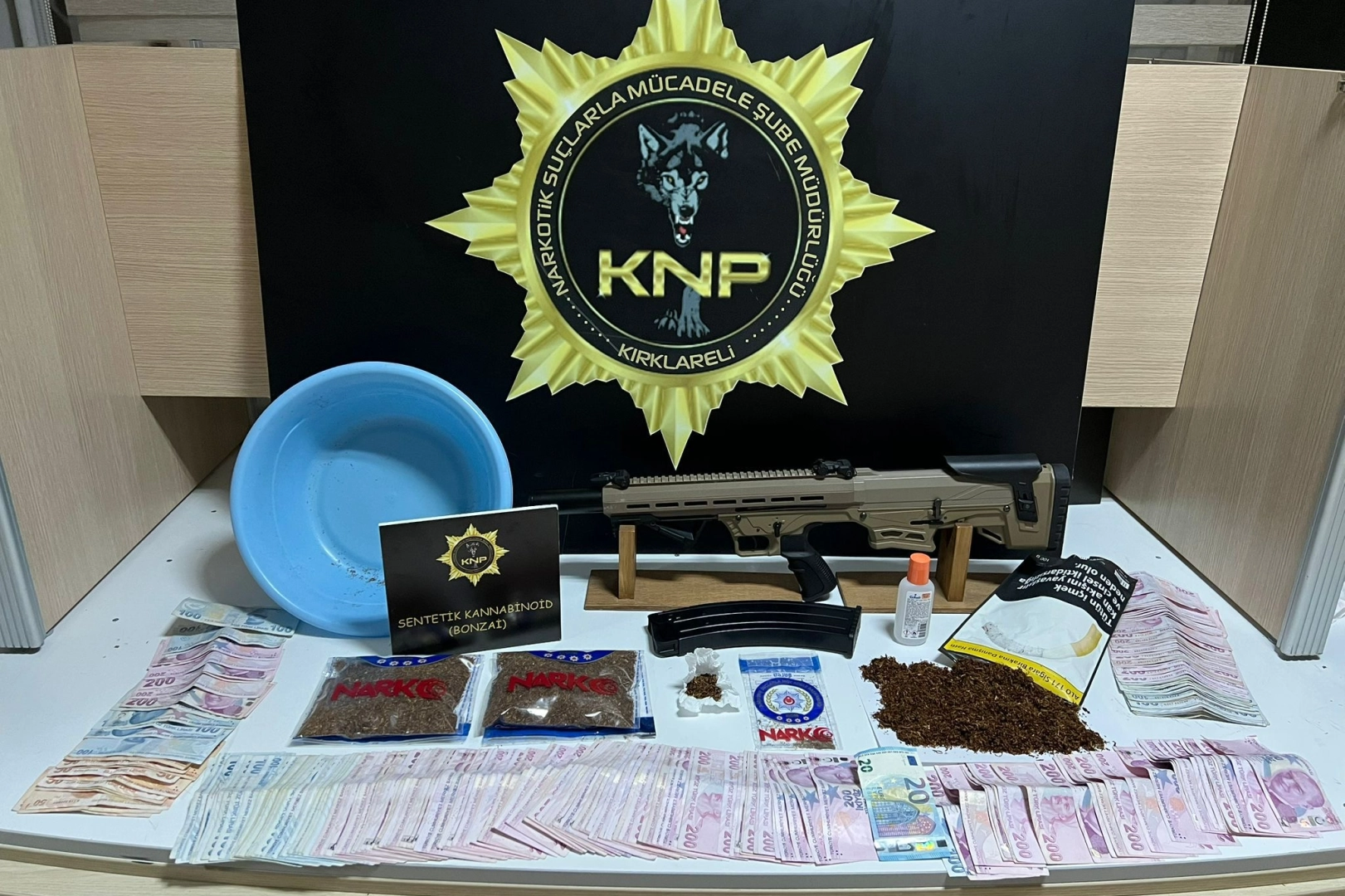 Bazı adreslerde yapılan aramada 277 gram sentetik uyuşturucu, 100 gram sentetik uyuşturucu yapımında kullanılan hammadde, suçtan elde edildiği değerlendirilen 41 bin 220 lira, bir miktar döviz ile av tüfeği ele geçirildi.