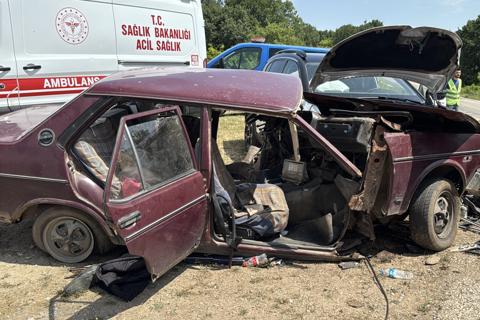 Kazada, araç sürücüleri ve otomobildeki yolcu M.K. yaralandı.