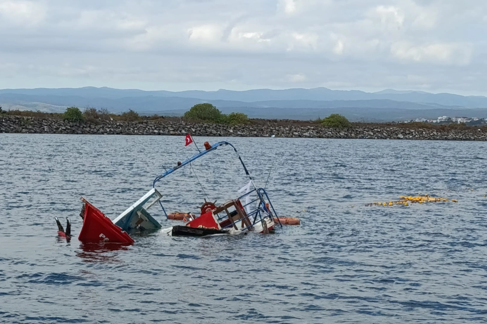 Daha sonra yan yatmaya başlayan tekneye dolan suyu tahliye edemeyen Ürey, bölgedeki başka bir balıkçı teknesinden yardım istedi.