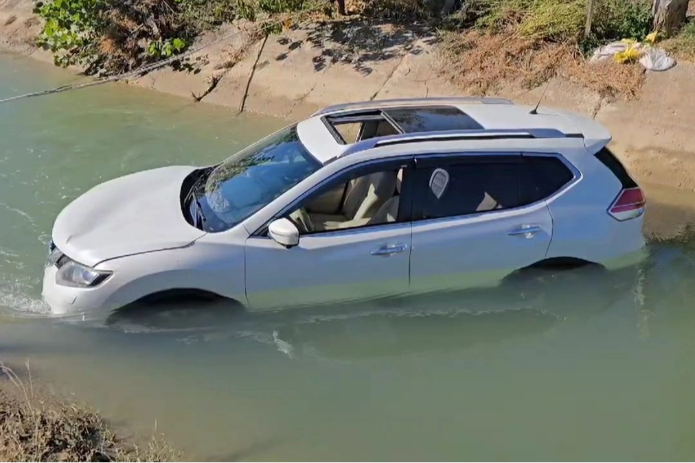 Alparslan B.'nin kullandığı araç, köpeğe çarpmamak için yaptığı manevra nedeniyle yarısı dolu sulama kanalına düştü.