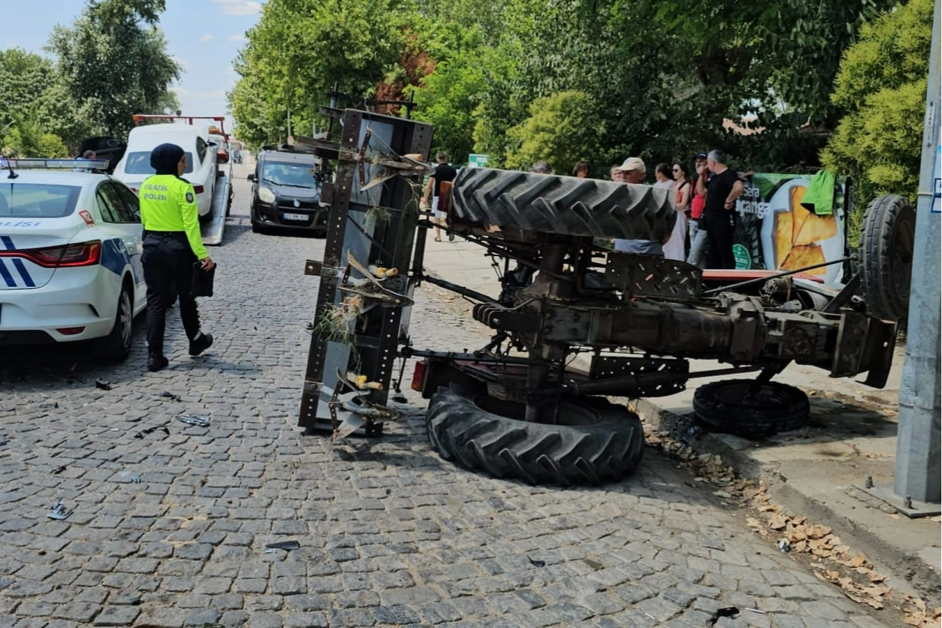 Edirne'nin Karaağaç Mahallesi Lozan Caddesi'nden Karaağaç yönüne seyir halinde olan C. Ö.'nün kullandığı 22 DH 91* plakalı traktöre, R. Y.'nin kullandığı 34 GS 42** plakalı otomobil çarptı.