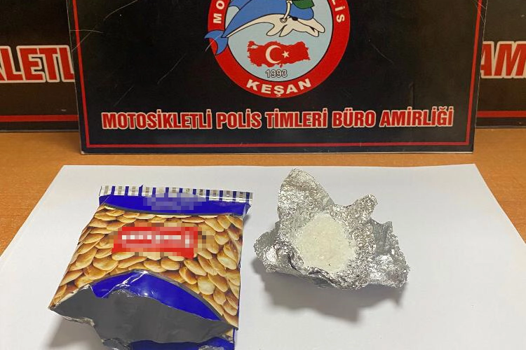 İlçe Emniyet Müdürlüğü Motosikletli Polis Timleri Büro Amirliği ekipleri, yaptıkları denetimlerde Büyükcami Mahallesi Fevzi Çakmak Caddesi üzerinde durumundan şüphelendikleri G.T.’yi durdurdu. G.T.’nin üzerinde yapılan aramada kuruyemiş paketine gizlenmiş 5 gram metamfetamin ele geçirildi. Polis, G.T.’yi gözaltına aldı.