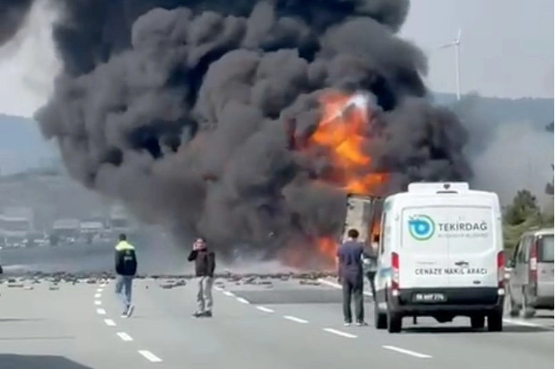 Patlamaların yaşandığı yangın nedeniyle otoyol, Edirne istikametinde trafiğe kapatıldı.