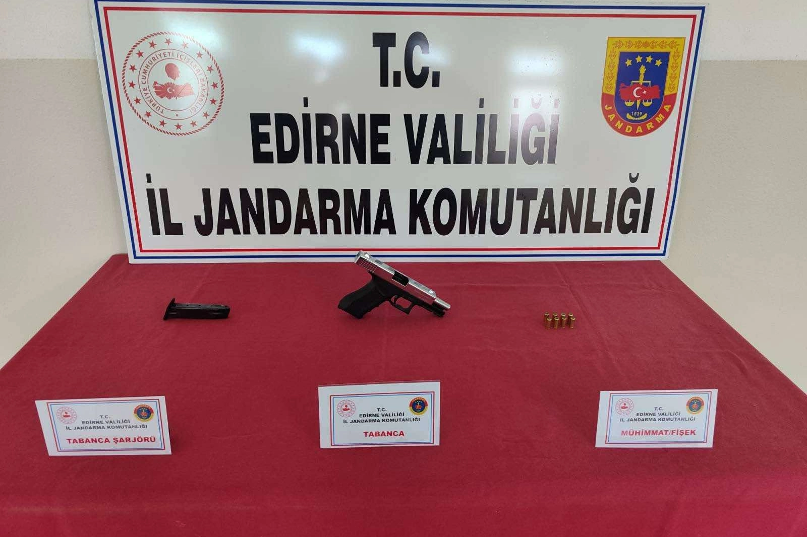 Havsa İlçesine bağlı Kuzucu köyünde yapılan kontrolde, bir araçta bulunan bir şahsın üzerinde bir adet kuru sıkı tabanca ele geçirildi. Olayla ilgili olarak, şüpheli şahsa 5729 Sayılı Ses ve Gaz Fişeği Atabilen Silahlar Hakkında Kanun’a muhalefetten 8 bin 322 TL idari para cezası uygulandı.
