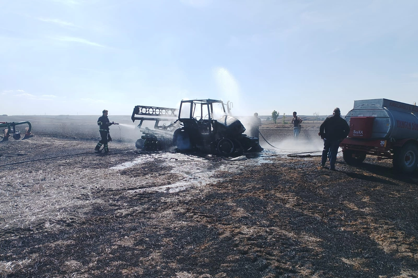 Olay yerine gelen itfaiye ekiplerinin söndürdüğü yangında traktör kullanılmaz hale geldi.