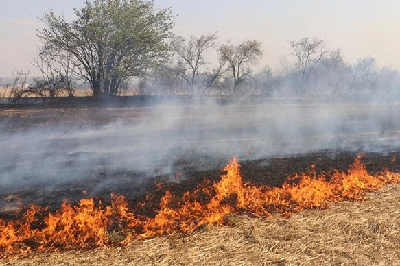 İshakça Mahallesi'nde hasat edilmiş buğday tarlasında henüz belirlenemeyen nedenle yangın çıktı.