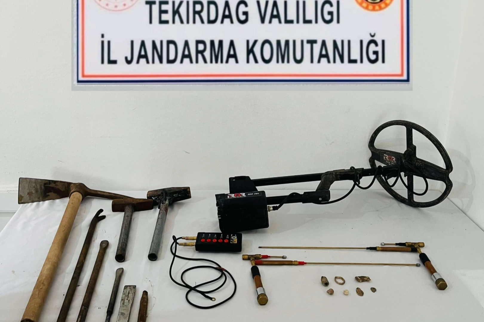 Tekirdağ İl Jandarma Komutanlığı ekiplerince yapılan çalışmalarda S.K., H.K., B.E., S.T. isimli şahıslar Malkara Kavakçeşme Mahallesinde durduruldu. Şahısların kullandığı araçta yapılan aramada 7 adet farklı şekil ve boyutlarda tarihi eser obje, 1 adet define arama dedektörü, 2 adet define arama için kullanılan bakır alan tarama çubuğu, 1 adet kazma, 2 adet çekiç, 4 adet keski, 1 adet levye ele geçirildi. Şahıslar ifadeleri alınmak üzere gözaltına alındı.