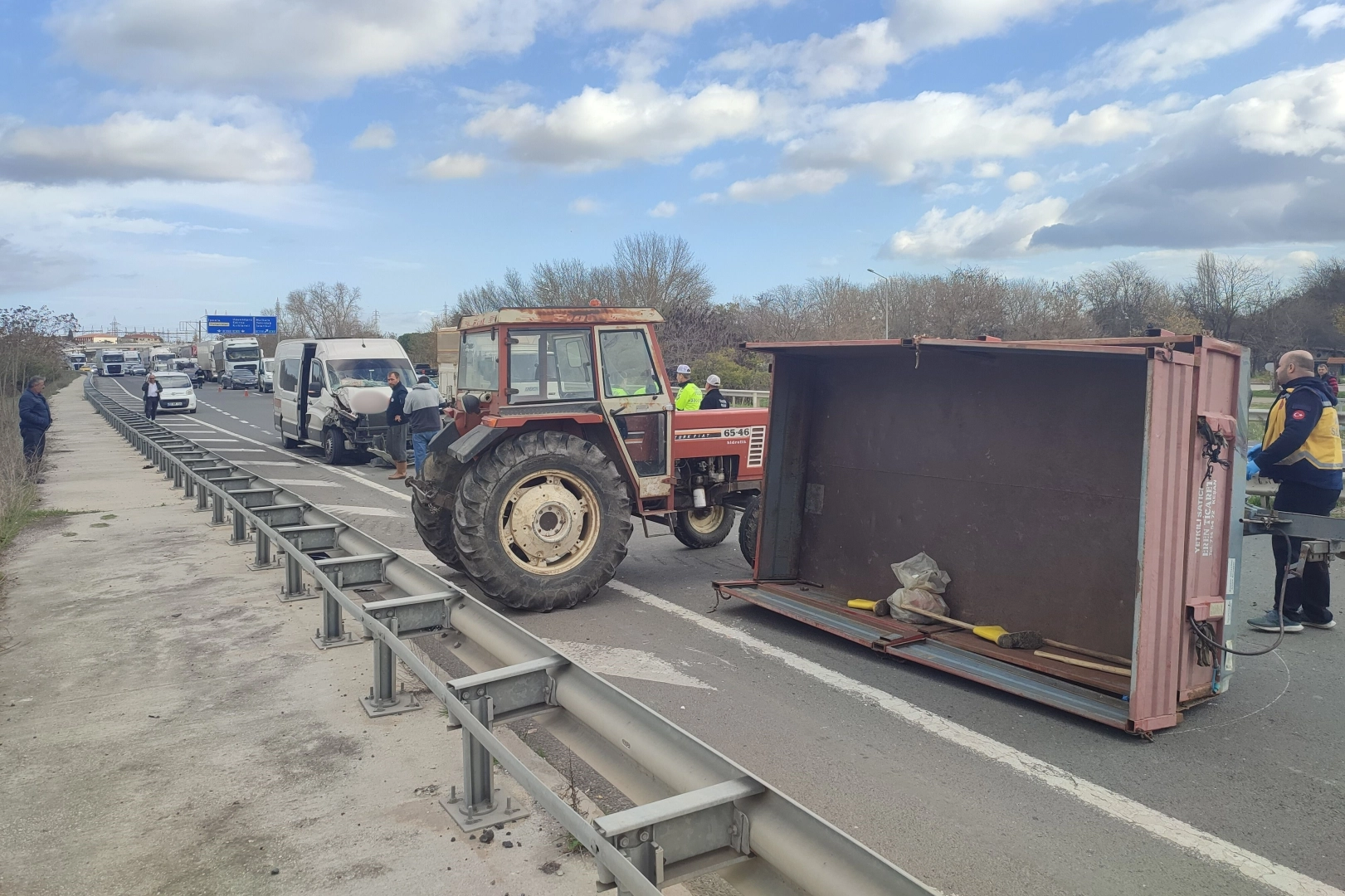 Alınan bilgiye göre, Tekirdağ'dan Gelibolu yönüne giden M.Ç. yönetimindeki yolcu midibüsü, S.Ü. yönetimindeki 22 ** 243 plakalı traktöre bağlı römorka arkadan çarptı. Çarpmanın etkisiyle römork yan yatarken, midibüsteki 1 yolcu yaralandı. İhbar üzerine kaza yerine sağlık ve polis ekipleri sevk edildi. Yaralı, ambulansla kaldırıldığı Keşan Devlet Hastanesi'nde tedavi altına alındı. Kazayla ilgili başlatılan soruşturma devam ediyor.