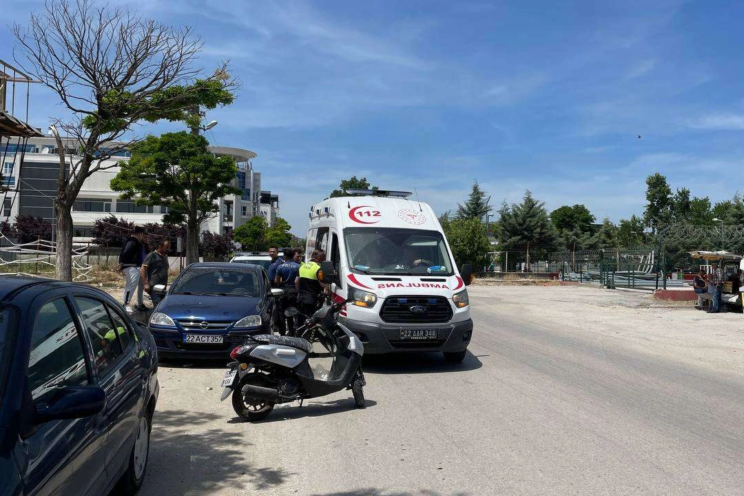 Alınan bilgiye göre, M.E'nin kullandığı 22 *** 654 plakalı motosiklet ile Y.Ö. yönetimindeki 22 *** 357 plakalı otomobil Şehit Emniyet Müdürü Ertan Nezihi Turan Caddesi'nde çarpıştı.