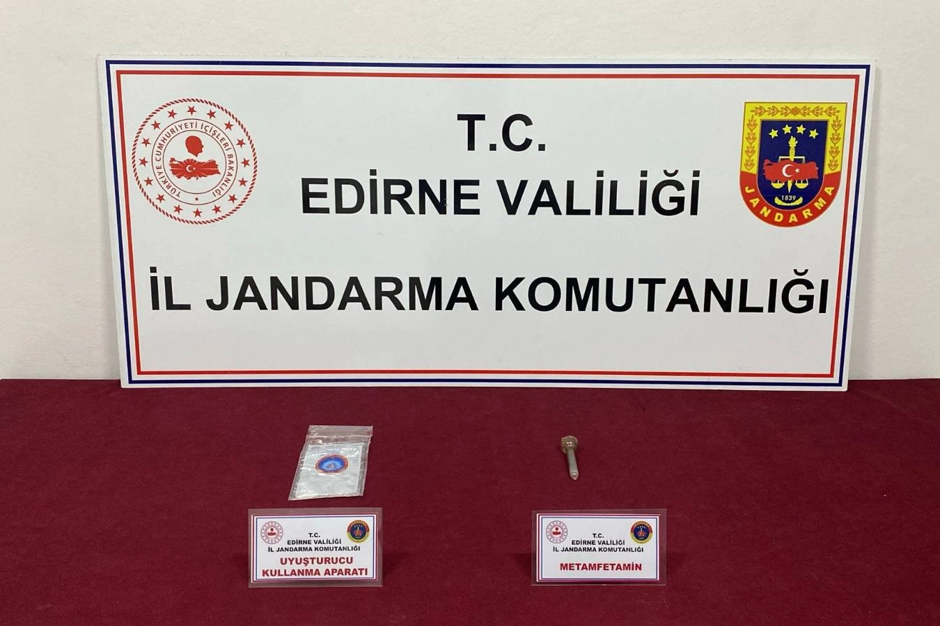 Edirne İl Jandarma Komutanlığı Kaçakçılık ve Organize Suçlarla Mücadele (KOM) Şube Müdürlüğü tarafından gerçekleştirilen faaliyetlerde, şüpheli bir kişiye ait bir pakette yapılan aramada 1,5 gram metamfetamin ve bir adet uyuşturucu kullanma aparatı ele geçirildi.