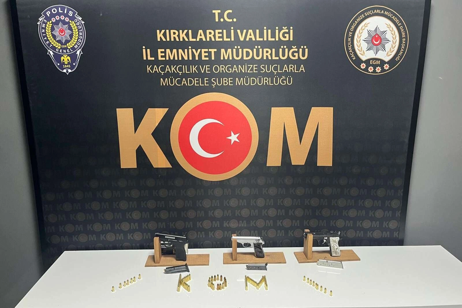 Kırklareli İl Jandarma Komutanlığı ekipleri, suç örgütlerine yönelik sürdürdüğü operasyonlarda 4 kişiyi yakaladı. Kırklareli il merkezinde 2 farklı olaya karışan 4 kişi, Jandarma ekipleri tarafından düzenlenen operasyonda yakayı ele verdi. Şahısların üzerinde ve iş yerlerinde yapılan aramalarda; 4 adet ruhsatsız tabanca ve şarjörleri, yakalanan silahlarda kullanılan 111 adet mermi ele geçirildi. Yakalanan şahıslar hakkında Ateşli Silahlar Kanunu'na muhalefet suçundan işlem başlatılırken, şahıslar gözaltına alındı. Şahıslar işlemlerinin tamamlanmasının ardından adliyeye sevk edildi.