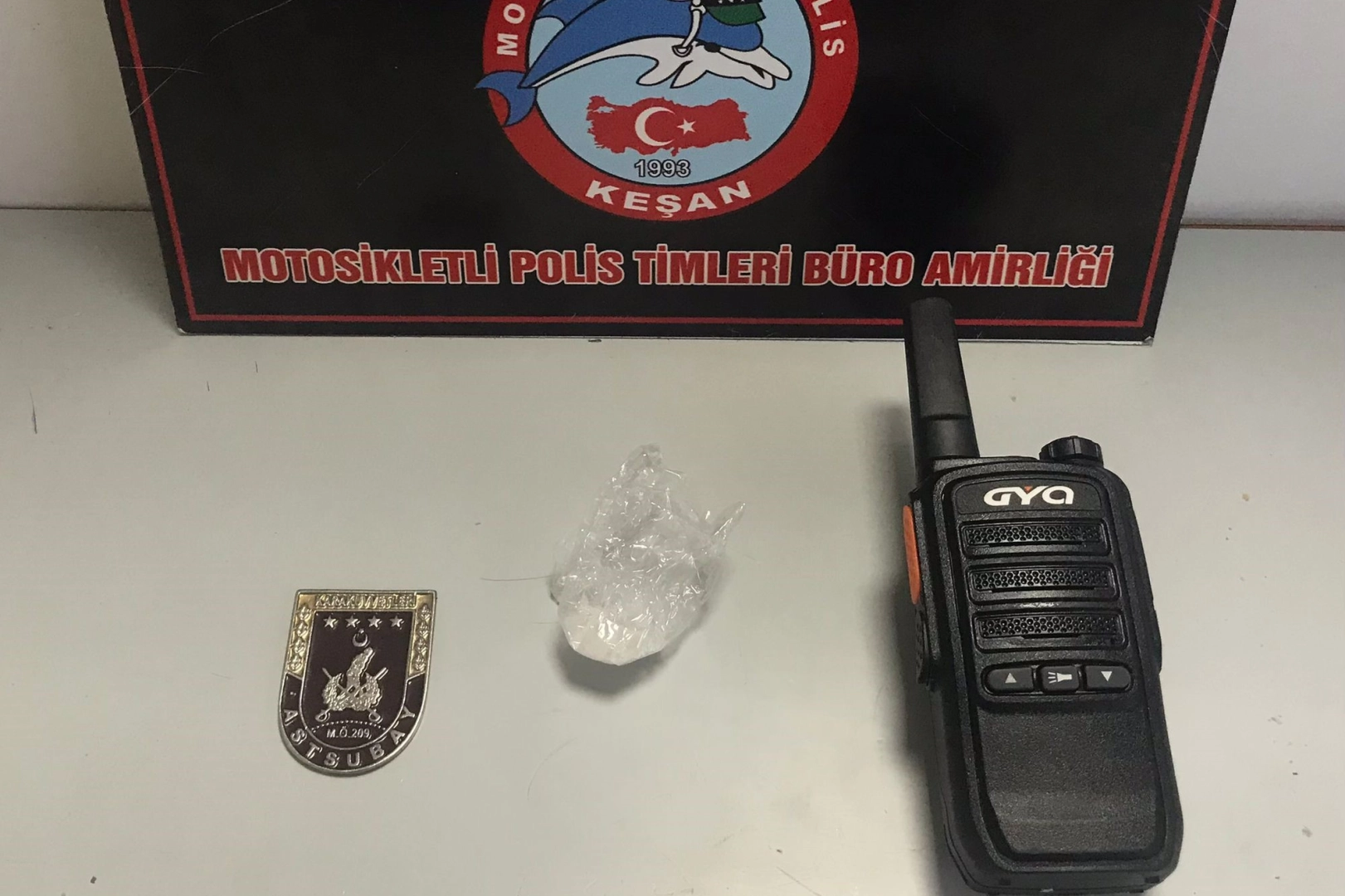 Alınan bilgiye göre; yol kontrol noktasında gerçekleştirilen uygulamada 70 kişi ve 24 araç sorgulandı. Yapılan kontrollerde, ticari taksi sürücüsü A.I.’nın üzerinden 1,28 gram uyuşturucu, cüzdanına yapışık vaziyette askeri makamlara ait rozet ve el telsizi ele geçirildi. Gözaltına alınan şüpheli hakkında adli işlem başlatıldı.