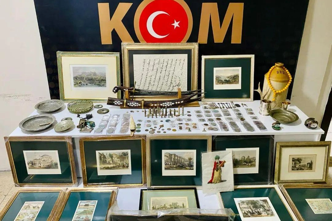 Yapılan aramalarda 240 tarihi eser niteliğinde obje, 2 dedektör ele geçirildi.