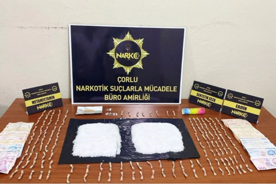 Tekirdağ İl Emniyet Müdürlüğü Narkotik Suçlarla Mücadele Şube ekiplerince Tekirdağ’da uyuşturucu madde ticareti yapan şahısları deşifre etmeye yönelik çalışmalar sürüyor. Yapılan çalışmalarda, Çorlu ilçesi Hıdırağa Mahallesi'nde 2 ikamette arama yapıldı. Aramalarda, 1 kilogram metamfetamin, 142 fişek, 170 gram eroin, 5 adet sentetik ecza, uyuşturucu ve uyarıcı madde ticaretinden elde edildiği değerlendirilen 8 bin 355 TL para ele geçirildi. Konu ile ilgili olarak G.T., C.A., M.A. isimli 3 şahıs hakkında, "uyuşturucu ve uyarıcı madde kullanmak" suçundan işlem yapıldı. D.B. ve M.A. isimli 2 şahıs uyuşturucu ve uyarıcı madde ticareti yapmak suçundan gözaltına alındı. Gözaltına alınan 2 şüpheli işlemlerinin ardından sevk edildikleri adliyede tutuklandı. Uyuşturucu ve uyuşturucu madde tacirleri ile mücadelenin kararlılıkla sürdürüleceği vurgusu yapıldı.