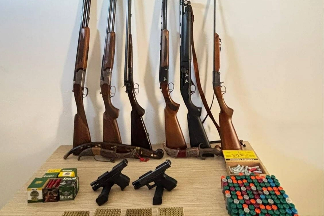 Evlerde ve bazı şüphelilerin üst aramasında 2 ruhsatsız tabanca, 8 av tüfeği ve çok sayıda tabanca fişeği ele geçirildi.
