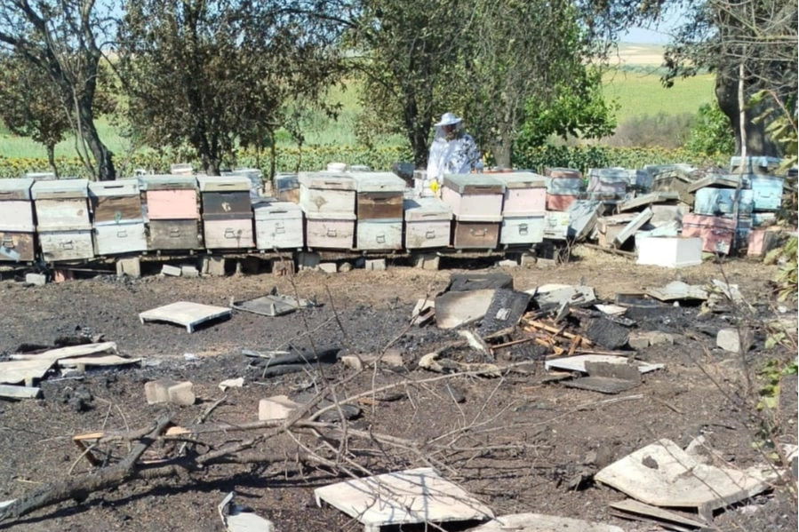 Yangında bölgede arıcılık yapan Fahrettin Yılmaz'a ait 400 arı kovanı zarar gördü.