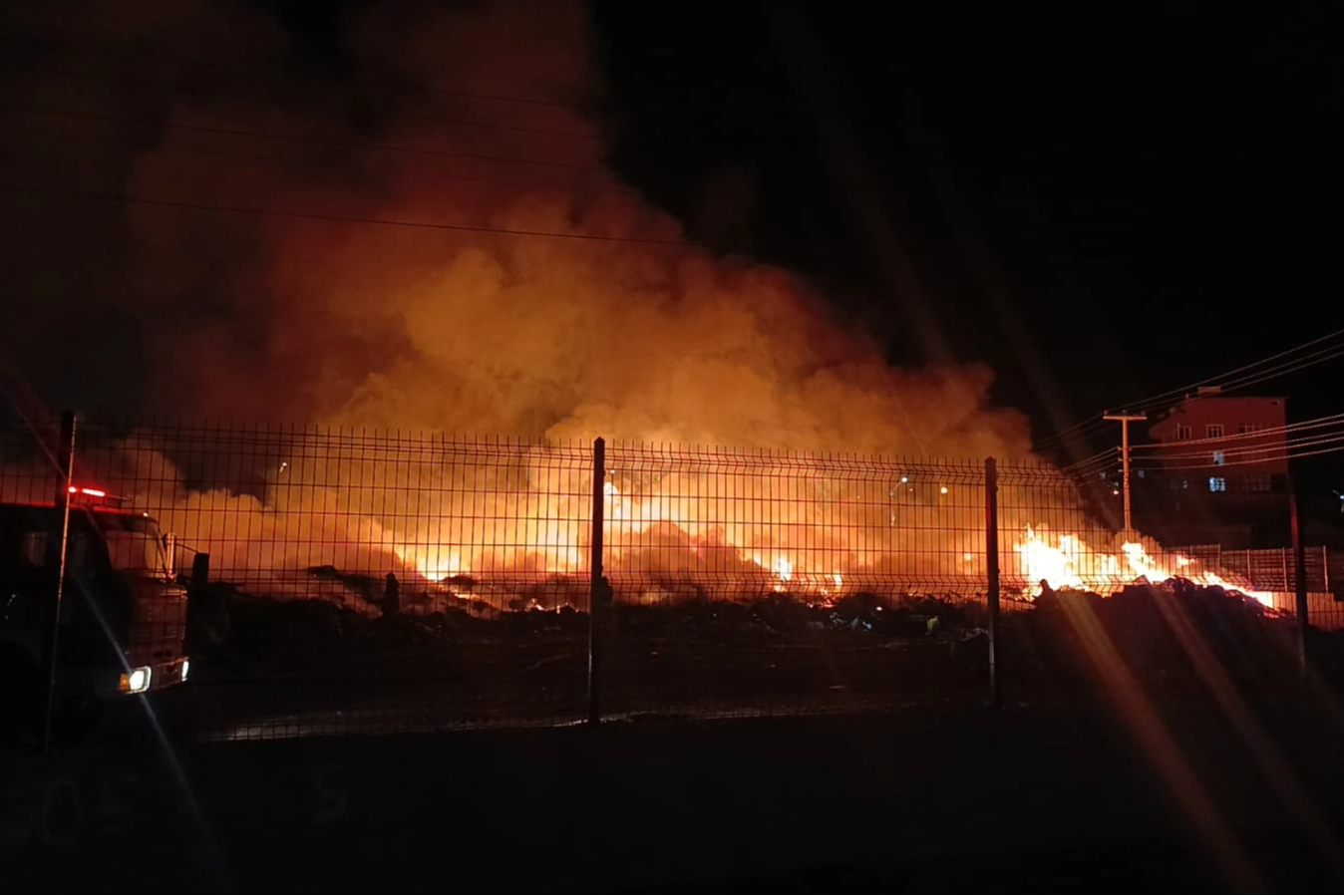 Yangın nedeniyle çıkan duman ve kötü koku ilçe merkezine kadar ulaştı.