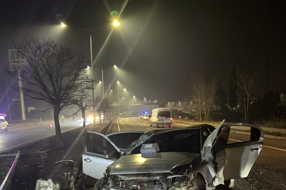 Büyük hasar gören otomobildeki sürücü ile A.M. ile E.Y. yaralandı.