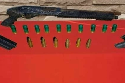 Evde yapılan aramada, 7 ruhsatsız tüfek, 5 ruhsatsız tabanca, 13 tabanca şarjörü, 5 pombalı tüfek şarjörü, 1300 tabanca fişeği, 9 bıçak, 2 kama ve muşta ele geçirildi.