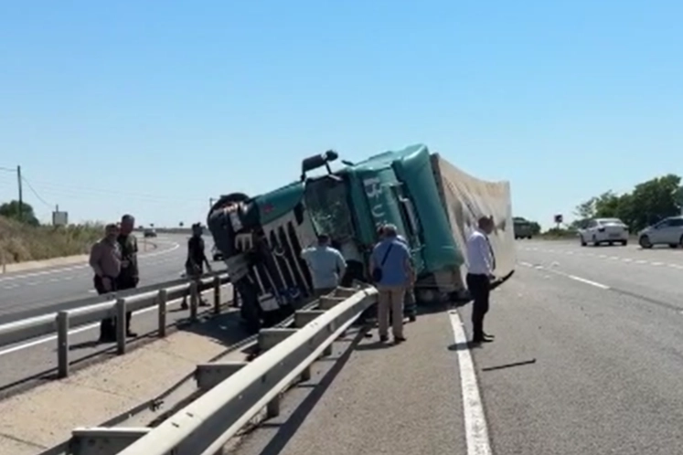 M.A. idaresindeki 34 ** 3173 plakalı tır, Malkara yolunda devrildi.