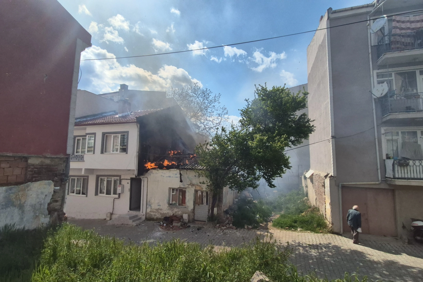 Yangın, öğleden sonra merkez ilçede bulunan Hacı Hürmüz Sokak üzerinde bulunan bir evde çıktı. Henüz belirlenemeyen nedenle çıkan yangın kısa sürede büyüyerek tüm evi sardı. İhbar üzerine olay yerine gelen itfaiye ekipleri, dar sokağa araçla ulaşım zor olunca koşarak kapıyı kırıp yangına müdahale etti. Daha sonra itfaiye araçlarının sokağı girmesi sağlandı. Ekipler yanan eve müdahale ederek alevleri kontrol altına aldı. Çalışmanın ardından yangın tamamen söndürülürken, evde büyük çapta hasar oluştu ve yapı kullanılamaz hale geldi. Yangının çıkış nedeniyle ilgili inceleme başlatıldı.