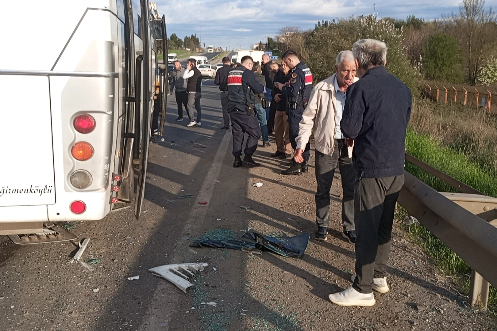 Edinilen bilgilere göre kaza, Çorlu - Edirne kara yolu üzeri Ergene ilçesi sınırları içerisindeki Ulaş Mahallesi mevkisinde meydana geldi. İddialara göre, bakkallara ekmek götüren O.C. idaresindeki 59 *** 425 plakalı araç, lastiği yarıldığı için emniyet şeridinde beklemeye başladı. Bu sırada aynı istikamete seyreden ve askeri personeli taşıyan Uzman Çavuş Y.D. yönetimindeki 59 *** 674 plakalı araç, önünde aniden beliren bu araca çarpmadan durdu. Bu iki araca ise bir tekstil fabrikasına işçi taşıyan içerisinde 26 işçinin bulunduğu H.A. idaresindeki 59 * **47 plakalı servis minibüsü çarptı. Kazada işçilerden biri, servis minibüsünün ön koltuğunda sıkıştı. Kaza yerine çok sayıda ambulans ve jandarma ekibinin yanı sıra itfaiye kaza kırım ekibi de sevk edildi. İtfaiye ekiplerinin sıkıştığı yerden çıkardığı yaralı işçi ambulansa alınarak tedavisinin yapılması için Çorlu Devlet Hastanesi Acil Servisine kaldırıldı.